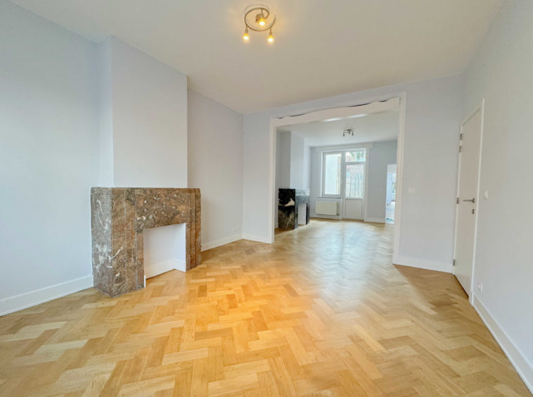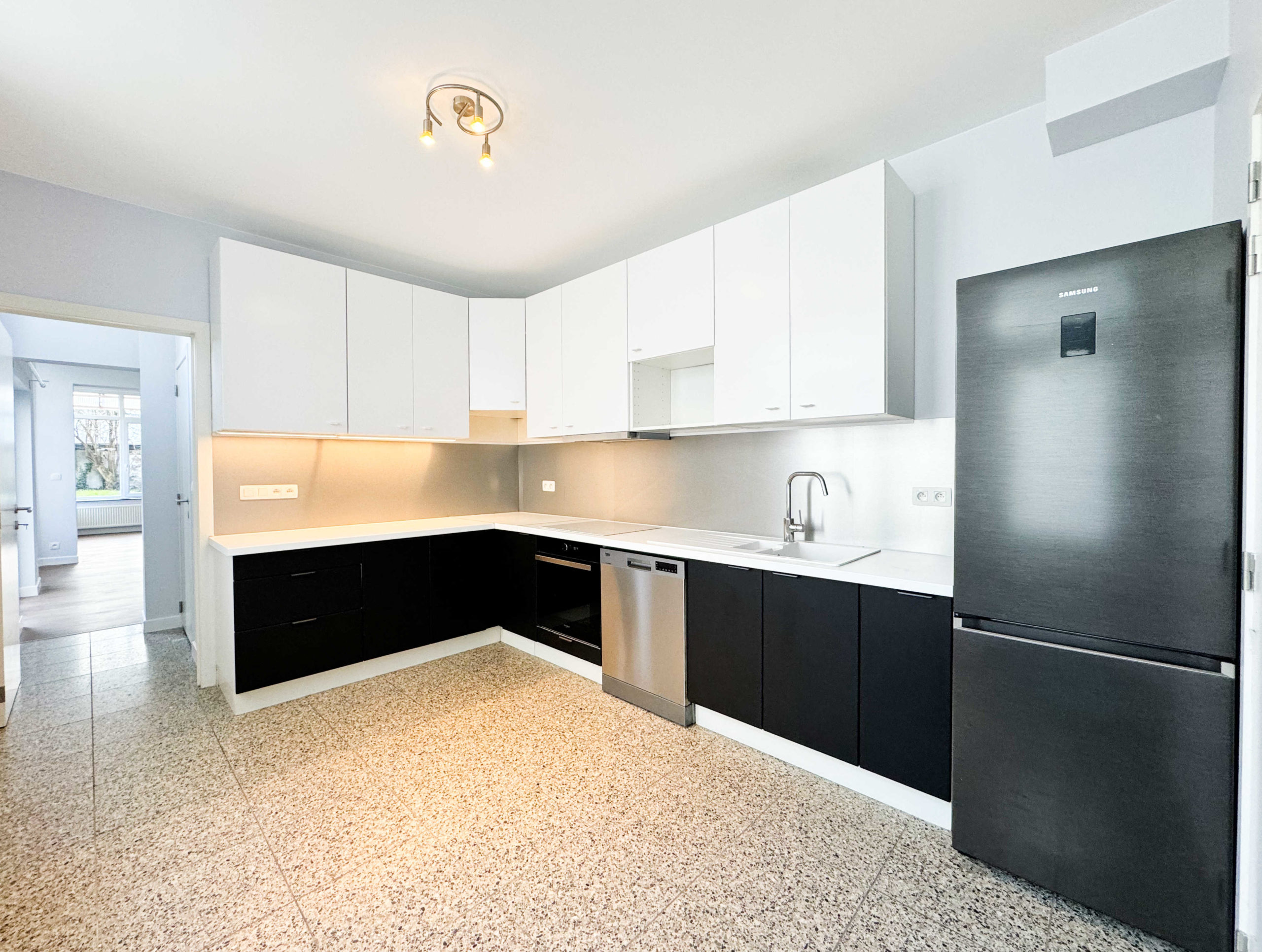 Woluwe-Saint-Lambert/Quartier des Constellations: A deux pas du parc Georges Henri et des facilités (commerces, bus, grands axes,…) ce bel appartement deux chambres rénové en 2024 se situe au rez-de-chaussée d’un petit immeuble avec peu de charges communes.