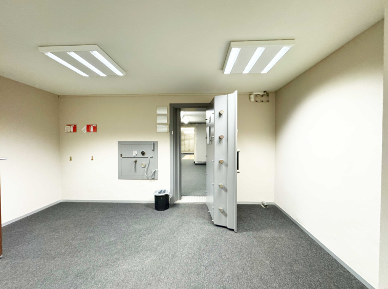 Le sous-sol, entièrement dédié aux fonctions de support, dispose de plusieurs espaces de stockage et d’archives, ainsi que des anciens coffres de l’agence, apportant un espace sécurisé supplémentaire et un caractère singulier au lieu.