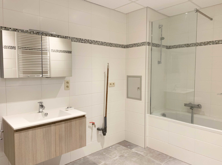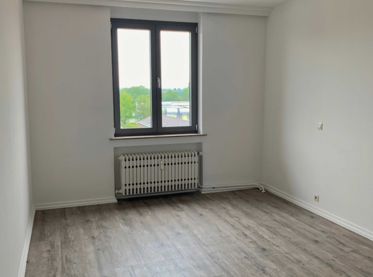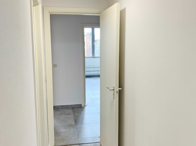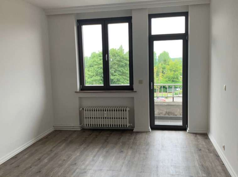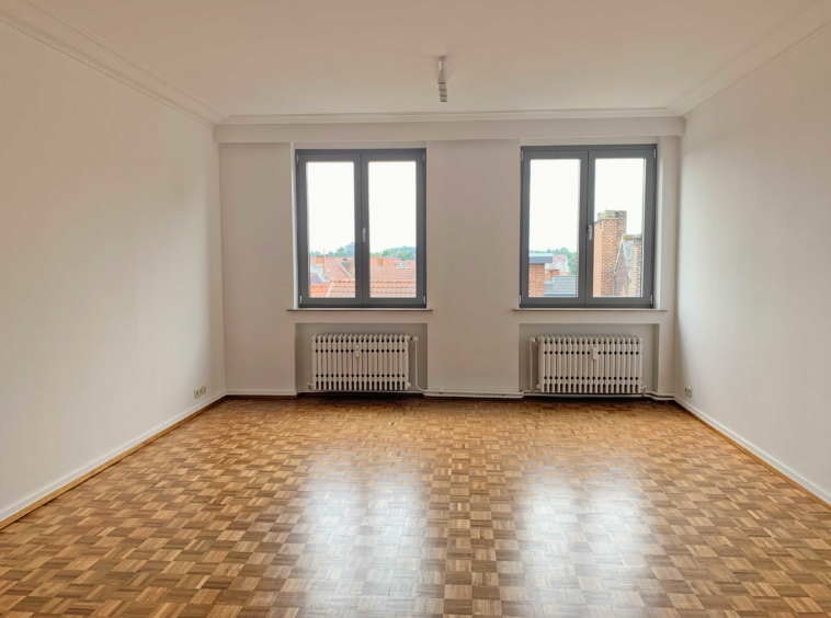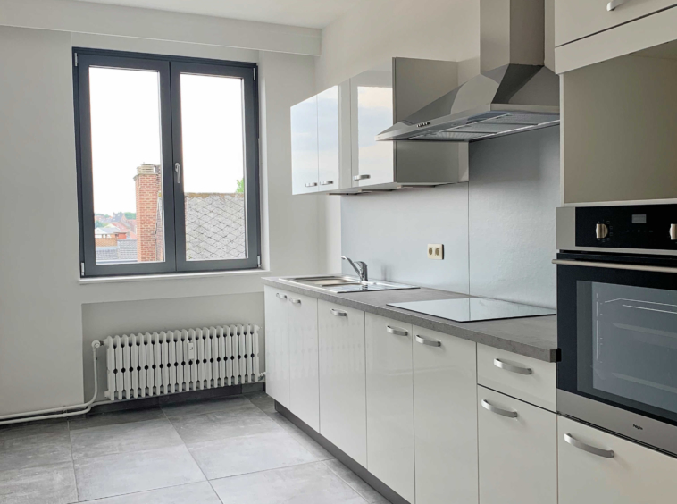 L’appartement comprend : Hall d’entrée, cuisine équipée (four, taque, hotte, lave-vaisselle), salon/living, hall de nuit, débarras, salle de bains/douche avec emplacement pour machine à laver, 2 chambres, une terrasse (vue arrière) et une cave.