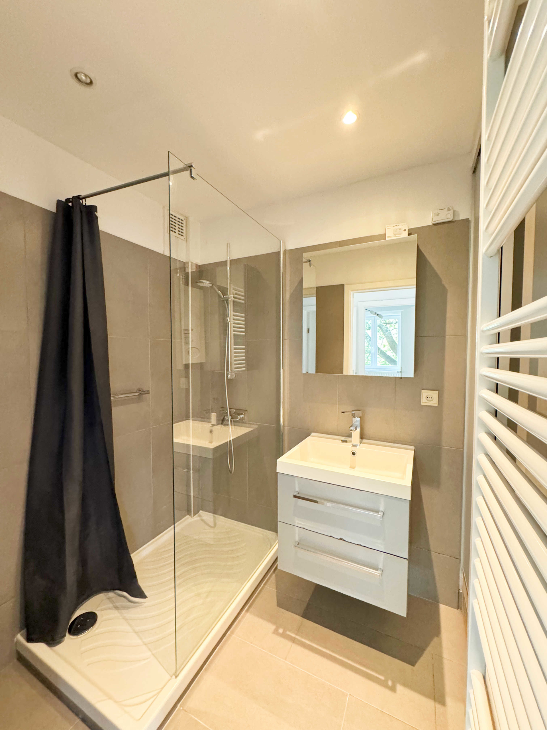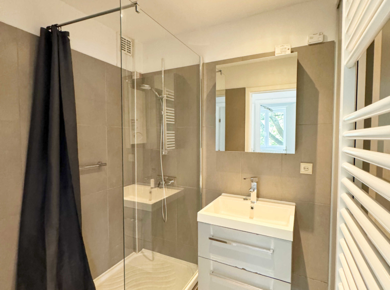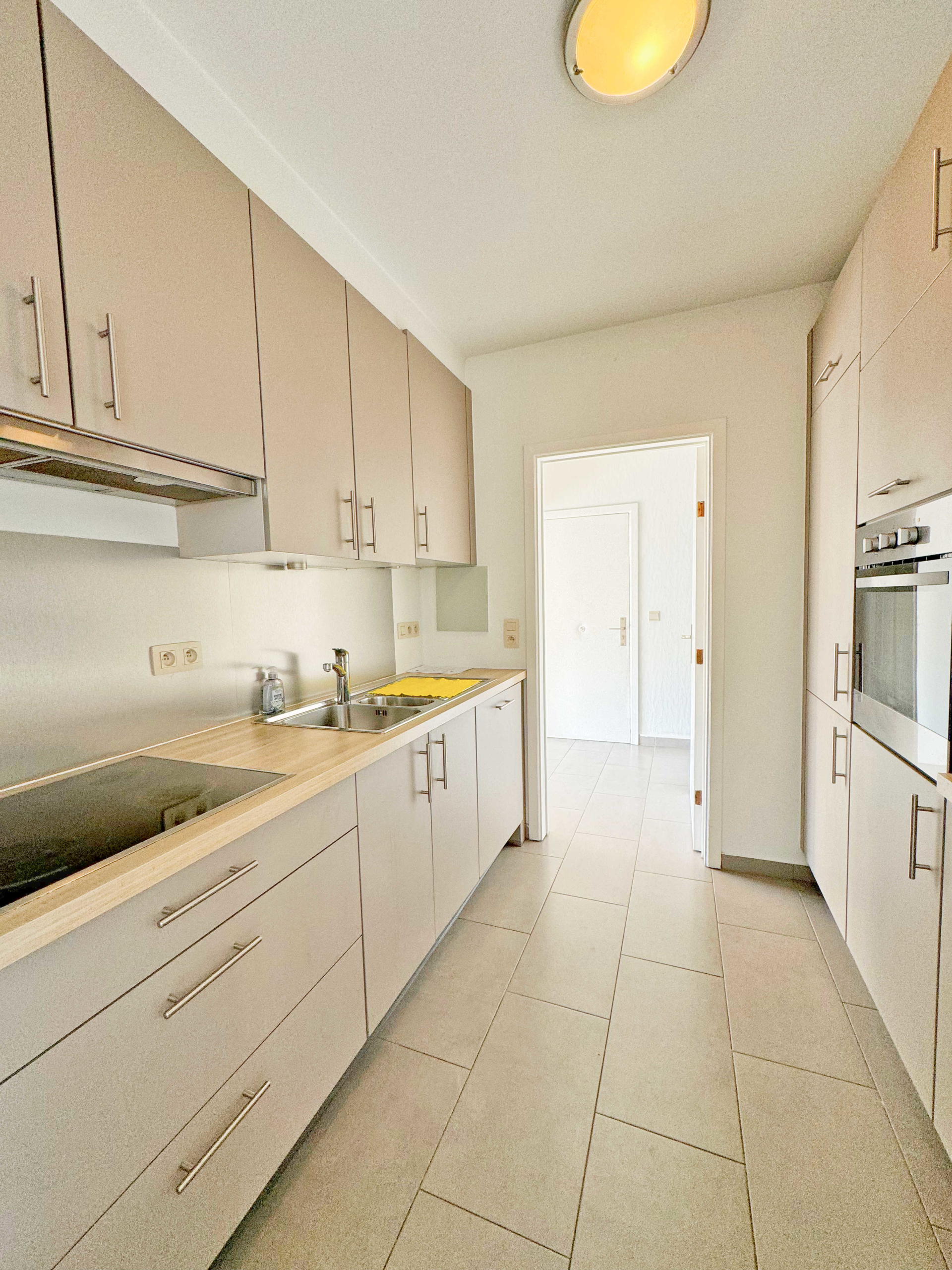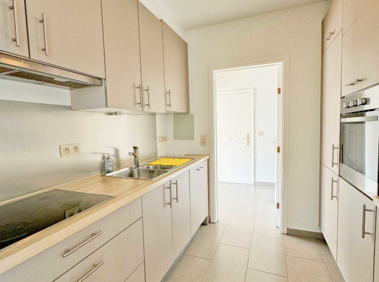 Il se compose comme suit : Hall d’entrée, grand séjour, terrasse, cuisine full-équipée (four, taque, hotte, frigo, congélateur) avec balcon fermé, hall de nuit, 3 chambres (+/- 15, 12 et 9 m²), salle de douche et une cave. Chauffage individuel au gaz.