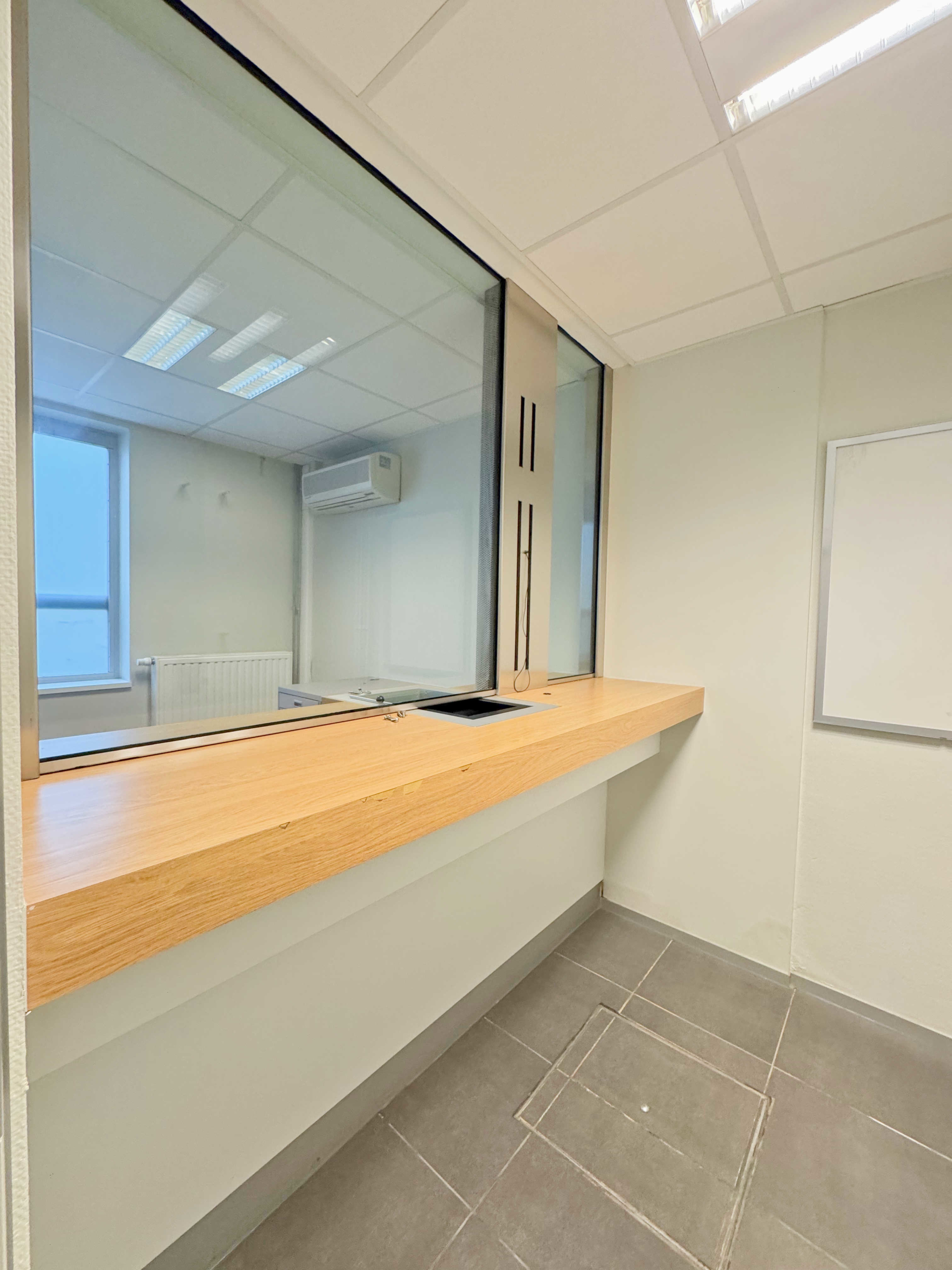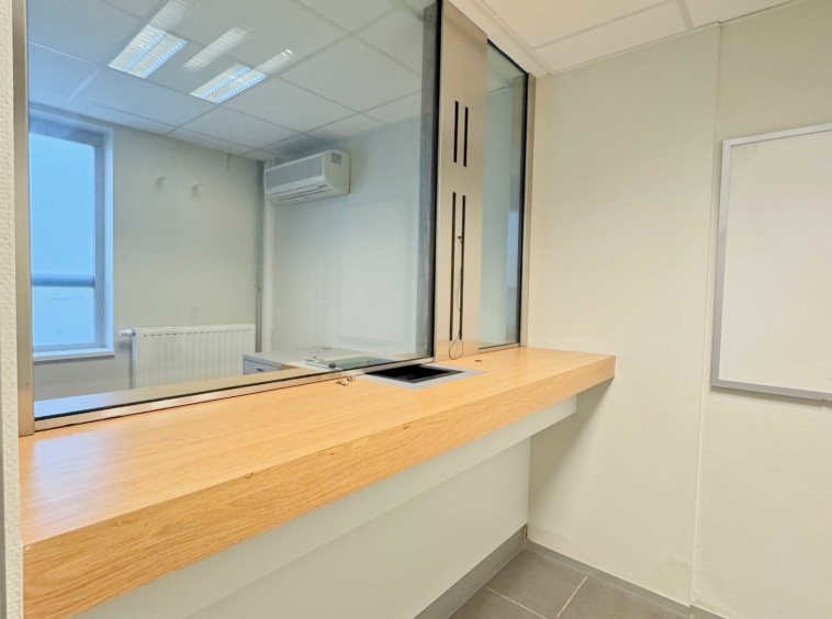 Actuellement : 8 bureaux, archives, réfectoire, local HVAC, chaufferie, local technique, ancien coffre, stock et local archive,… .