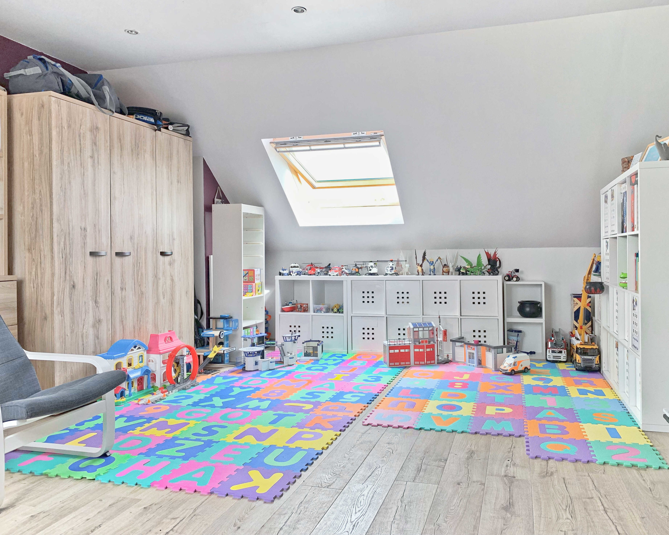 La maison se compose comme suit : Hall d’entrée, séjour, Cuisine full-équipée, Terrasse et Jardin Sud-Est, Cabane de jardin, Wc, Espace de rangements et la buanderie. Au 1er niveau : Hall de nuit, chambre parentale avec dressing »Camber », une salle de bain, deux chambres avec armoires. Au 2ème niveau : Salle de jeux , espace bureau et rangements (possibilité 4ème chambre avec salle d’eau). Un car-port, possibilité de mettre 2 voitures.