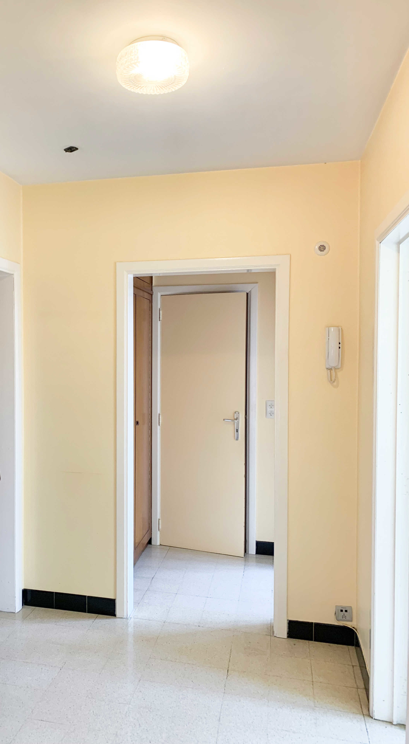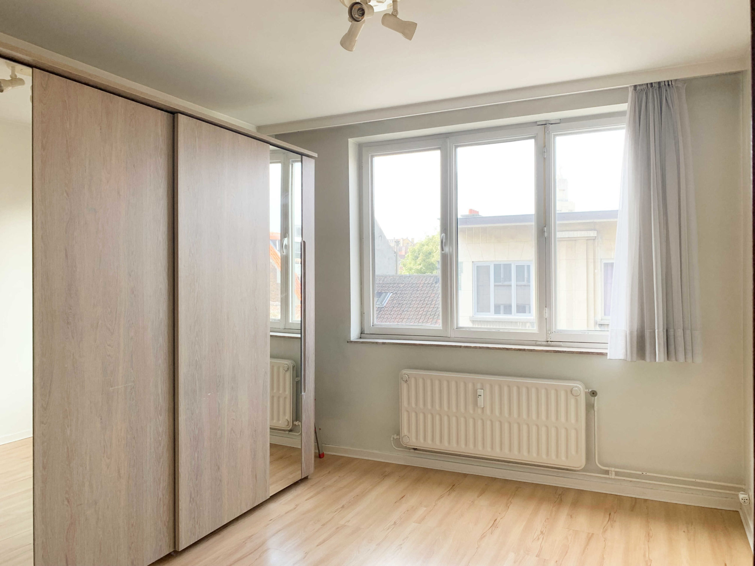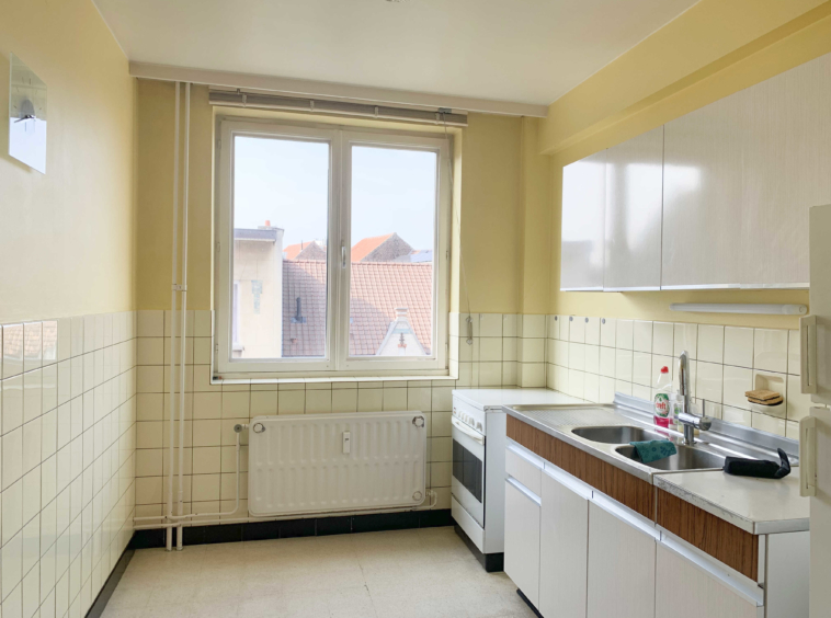 Situé au 4ème étage, l’appartement se compose comme suit : un large hall d’entrée, une cuisine, un grand séjour, un hall de nuit avec rangements, une grande chambre et une salle bain avec espace machine.