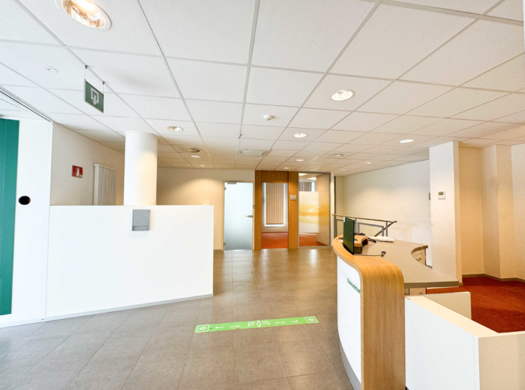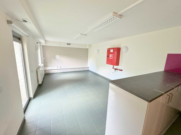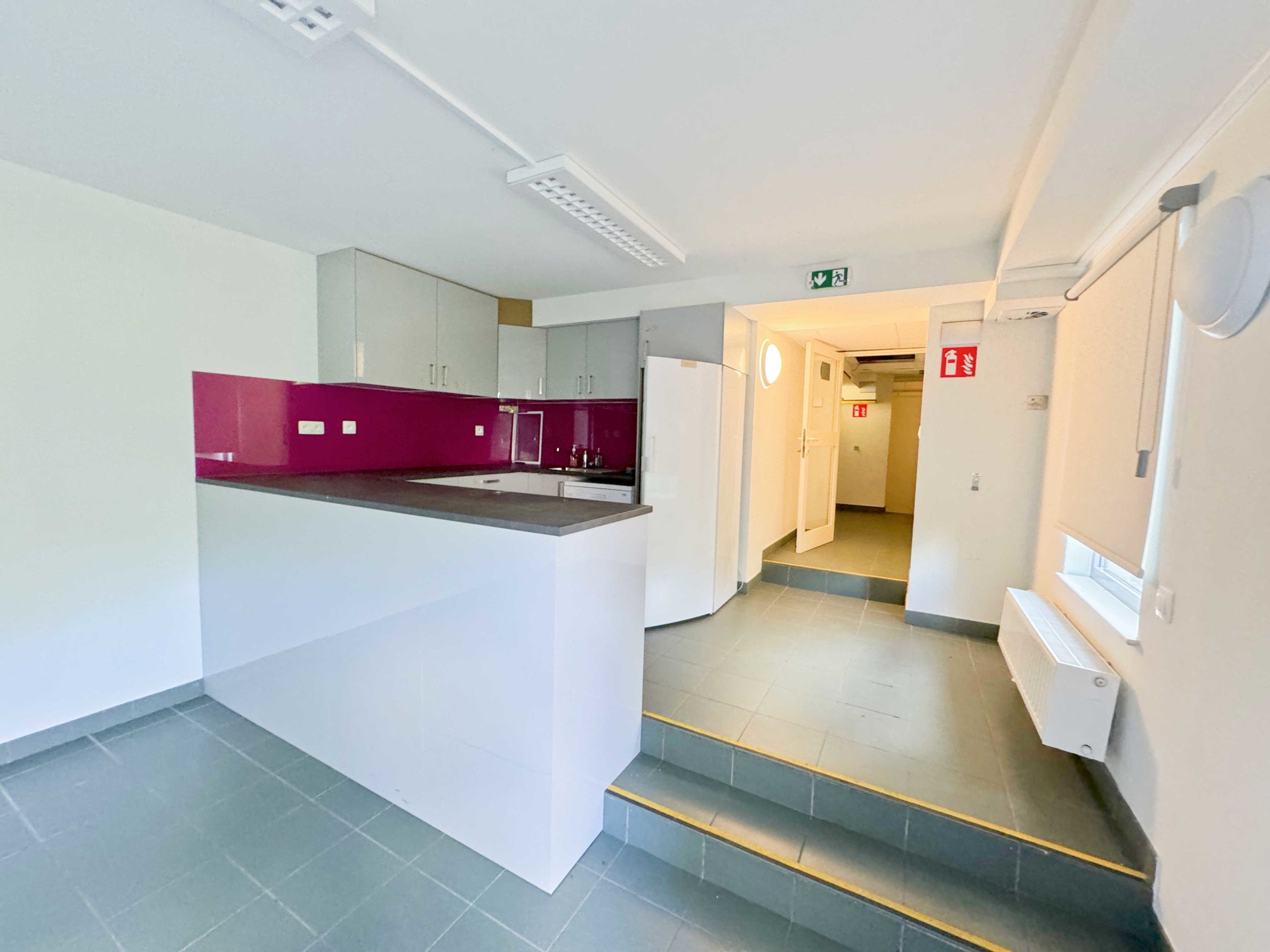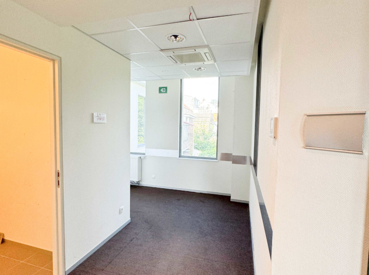 Au rez-de-chaussée, entrée via la rue Robert Boisacq, accueil, bureaux (4), stock et escaliers.