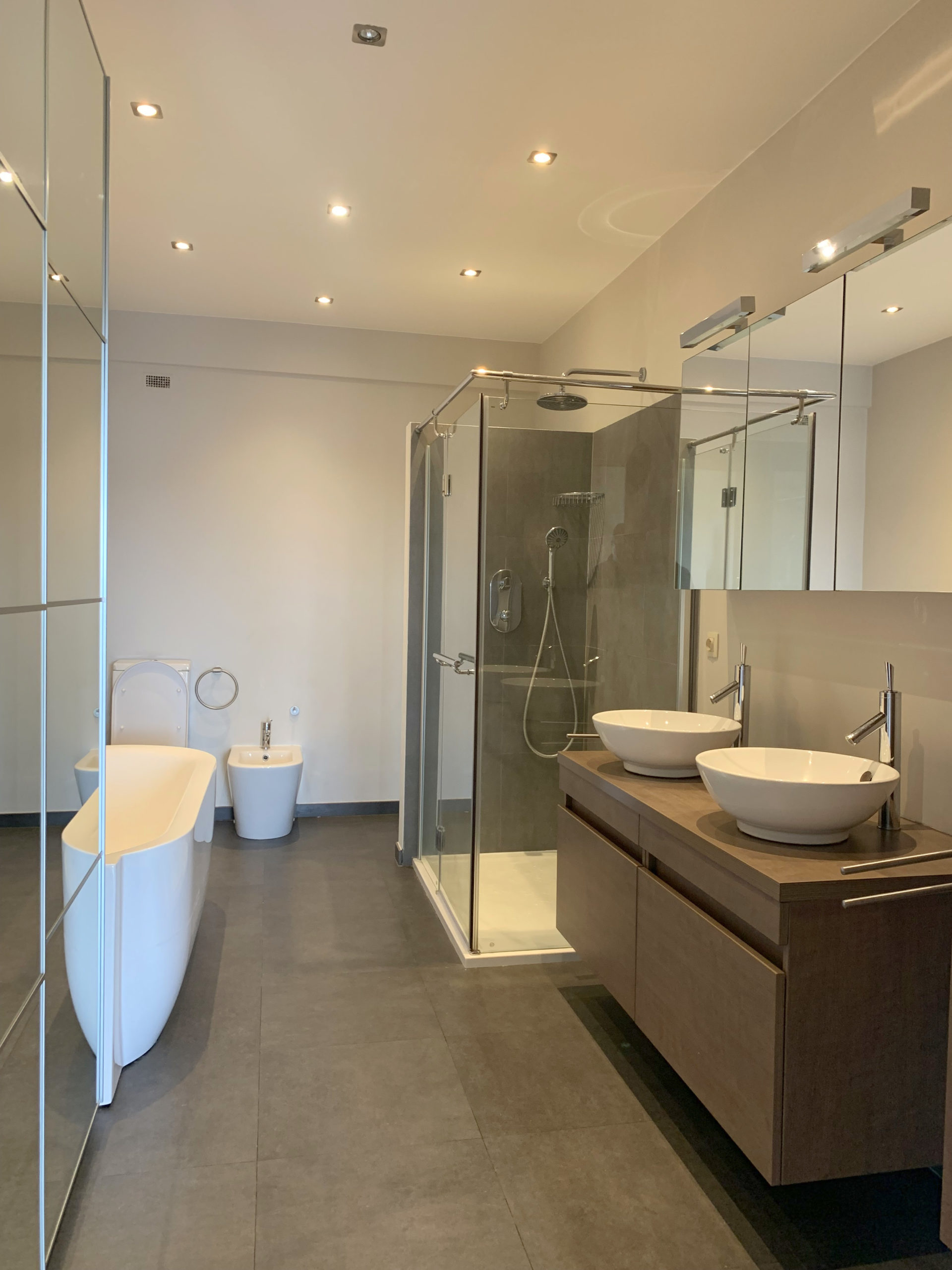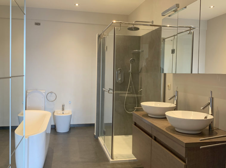 Il se compose comme suit : Hall d’entrée, Spacieux séjour avec terrasse, Cuisine full-équipée (four, taque à induction, frigo, congélateur, micro-onde, four vapeur, lave-vaisselle), Hall de nuit, deux chambres donnant sur la terrasse vue arrière dont une grande Chambre parentale avec salle de bain/douche et dressing, une seconde chambre avec sa salle de douche et une petite chambre bébé ou bureau avec point d’eau.