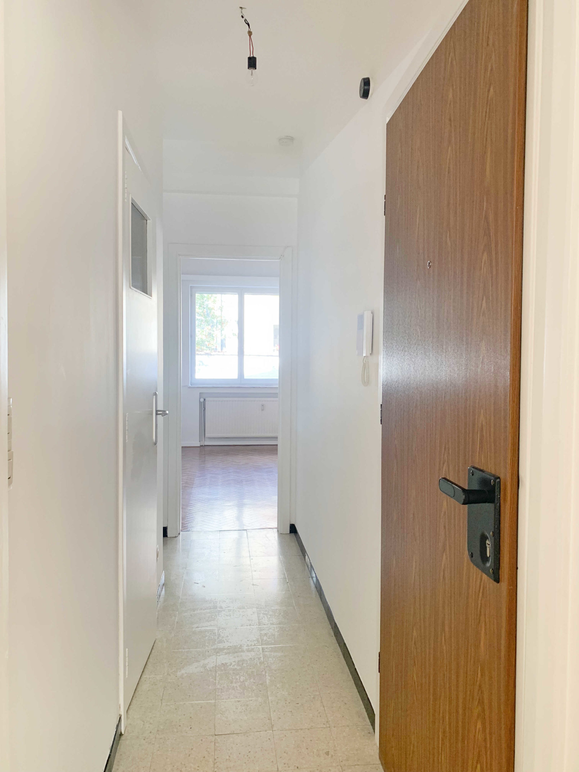 L’appartement se compose comme suit: Hall d’entrée, grand séjour avec terrasse Sud-Est et rangements, cuisine semi-équipée (four, taque, hotte) avec balcon, hall de nuit, salle de douche, une chambre avec armoires. Au sous-sol : une cave.