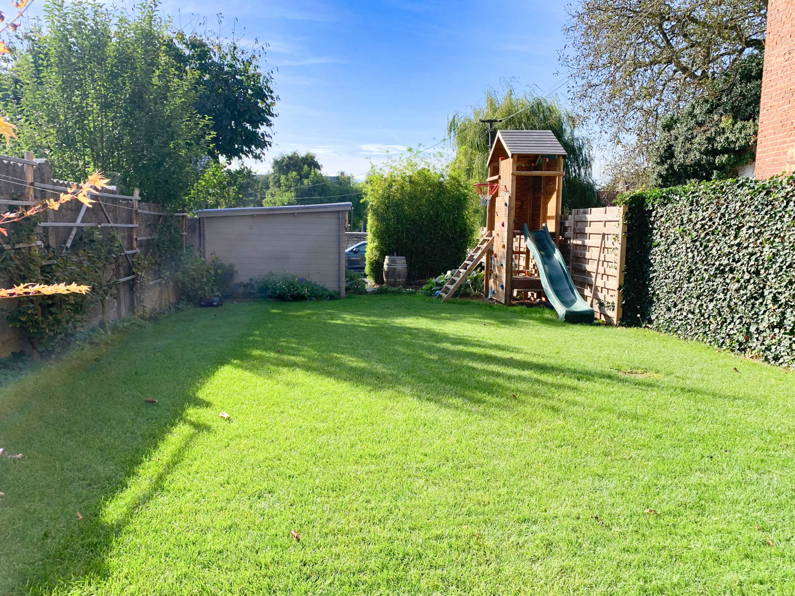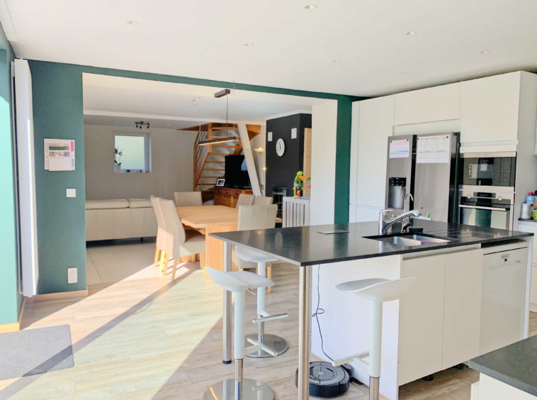 La maison se compose comme suit : Hall d’entrée, séjour avec feu ouvert (poêle à bois et pellet), Cuisine full-équipée, grande Terrasse, Jardin orienté Sud, Cabane de jardin, bureau, espace de rangements et une buanderie. Au 1er niveau : Hall de nuit, deux chambres, une salle de bain/douche, une chambre parentale avec dressing, une salle de douche et rangements. Combles : Grenier. Sous-sol : cave à vin.