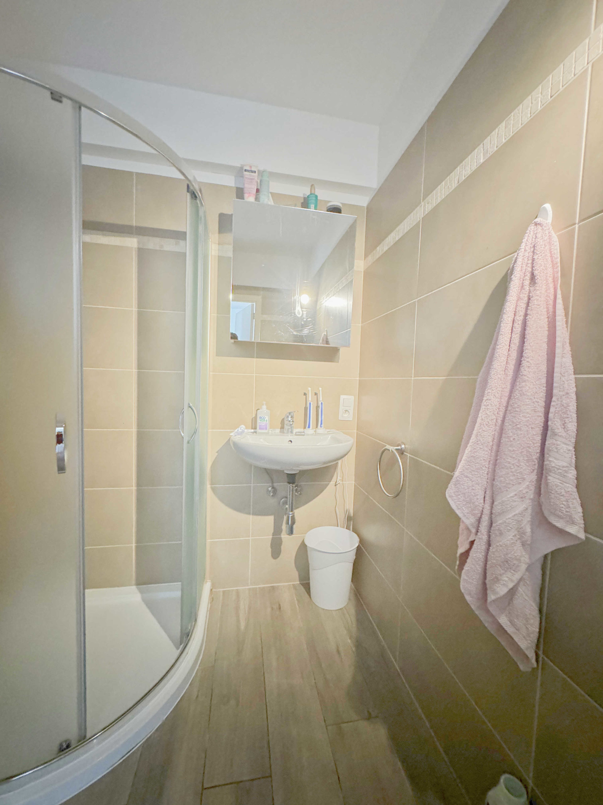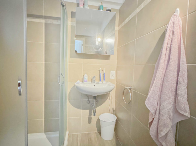 L’appartement se compose d’un grand séjour, deux terrasses (Sud-Est et Sud-Ouest), une cuisine (four, taque et hotte), une chambre avec petit dressing et une salle de douche.